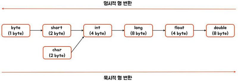 ๊ธฐ๋ณธ์ ์ผ๋ก ์์ ๋ฒ์ -> ํฐ ๋ฒ์๋ก ์๋ ํ๋ณํ์ด ๋ฐ์